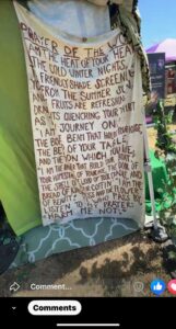 ROLL THE STONES: Have the visitor roll the pair of dice & add them up. You look on the chart for the first name. Have the visitor roll the pair of dice again & add them up. You look on the chart for the 2nd part of their name. Write their elf, fairy or dwarf name on a name tag & present them with their new Fae name. We do ask for a dollar donation for Roll The Stones. If they don’t have a dollar, we ask them to sing & act out “I’m A Little Teapot”. In lieu of signing, they can read aloud “Prayer Of The Woods”.