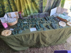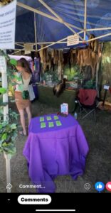 ROLL THE STONES: Have the visitor roll the pair of dice & add them up. You look on the chart for the first name. Have the visitor roll the pair of dice again & add them up. You look on the chart for the 2nd part of their name. Write their elf, fairy or dwarf name on a name tag & present them with their new Fae name. We do ask for a dollar donation for Roll The Stones. If they don’t have a dollar, we ask them to sing & act out “I’m A Little Teapot”. In lieu of signing, they can read aloud “Prayer Of The Woods”.