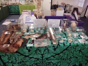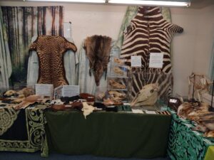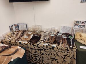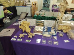 We setup the display of the specimens with different families of species on different tables.
