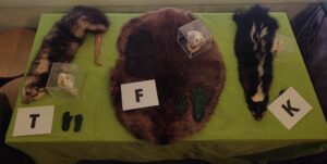 A collection of museum quality specimens of real animal furs, real animal track casts & animal skulls.